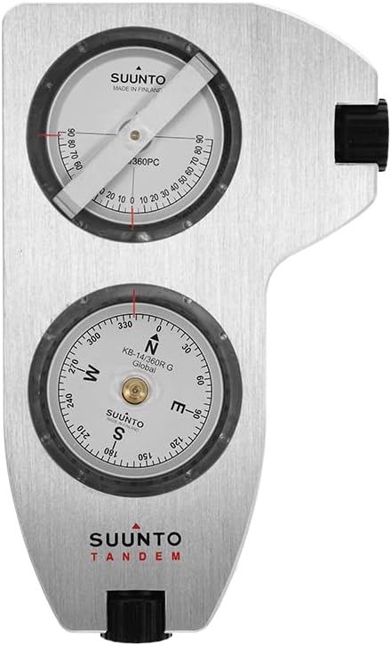 • Professional Clinometer and Compass: SUUNTO Tandem is a liquid filled precision compass and clinometer in one compact and sturdy alloy housing; Can be mounted on tripod for stable operation; Scales for inclination in degrees and %