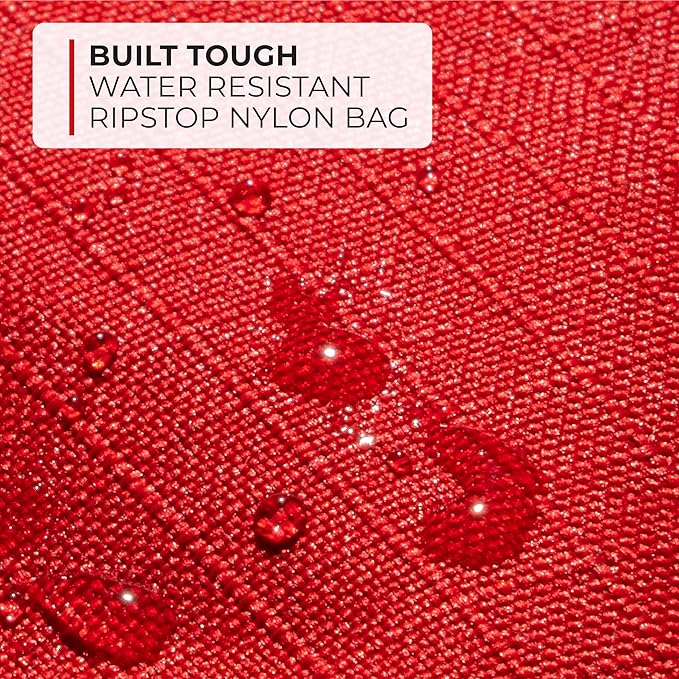 • Everything in One Bag: The travel essentials are crafted from durable rip-stop nylon and vinyl fabric. These medical Supplies are lightweight & Compact. Extensive inner pockets keep the contents stored neatly between uses. Reflective and red logo. This first aid medical kit is 7.5 inches long x 4.5 inches wide x 3.0 inches thick. When opened fully the kit spreads to 15.0 inches long. It weighs approximately 0.3 lbs