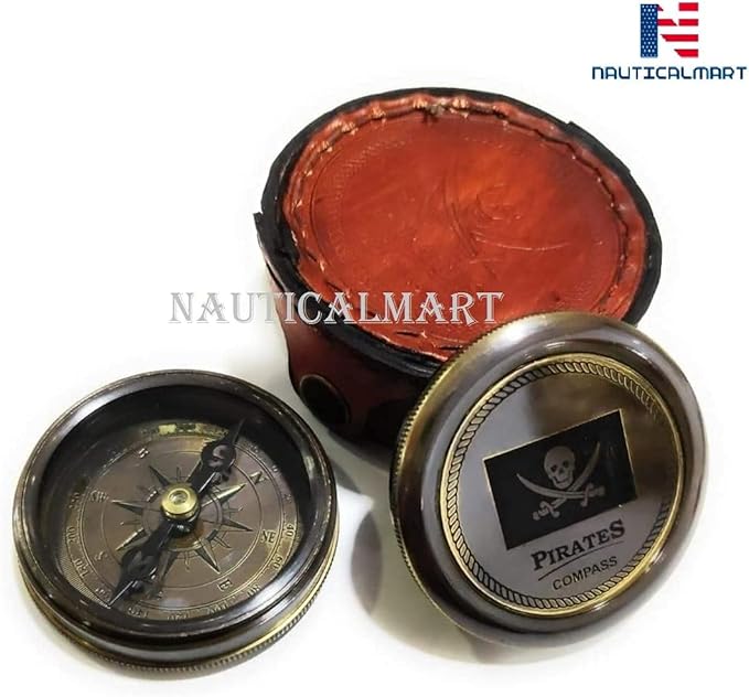 Brass Compass Pirates of Caribbean Jack Sparrow Pocket Antique Gift Free Embossed Leather Case Personalized Compass Engraved, Gift for Baptism, Confirmation, Graduation, Anniversary