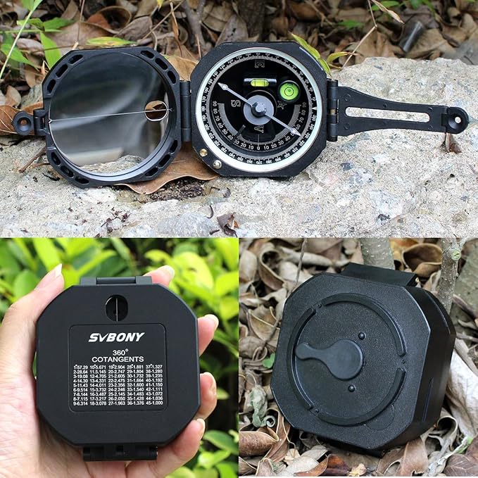 SVBONY Camping Military Compass Pocket Transit Multifunction Compass Lensatic Sighting Fluorescent Waterproof for Hunting Hiking with Strap