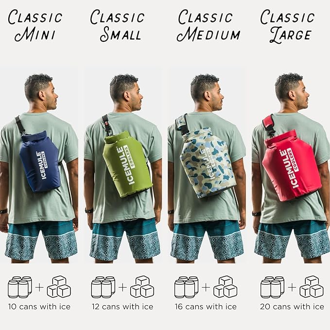 ICEMULE Classic Collapsible Sling Strap Cooler Hands Free, 100% Waterproof, Floats, 24+ Hours Cooling, Soft Sided Cooler for the Beach, Concerts, Traveling, RV-ing, Hiking, Kayaking, Camping & Fishing