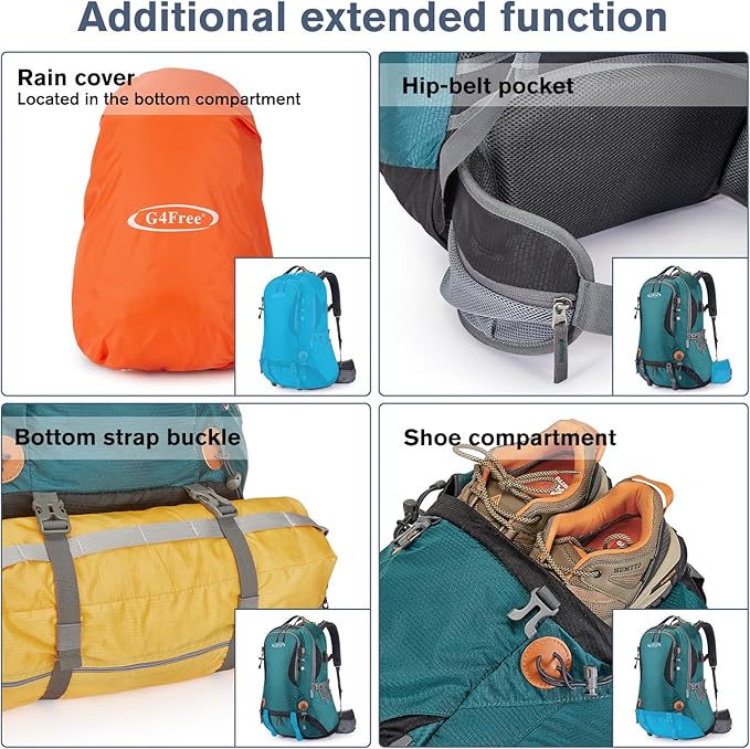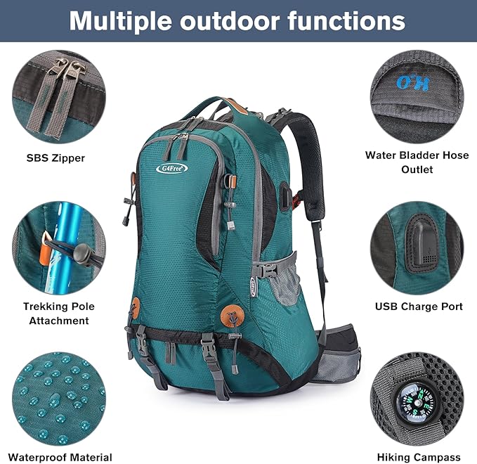 G4Free 50L Hiking Backpack Waterproof Daypack Outdoor Camping Climbing Backpack with Rain Cover for Men Women