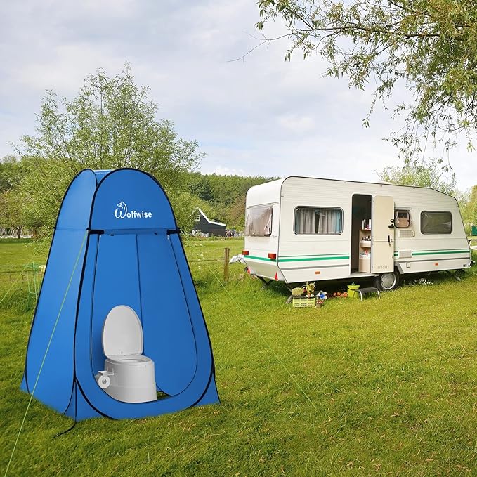 WolfWise Portable Pop Up Privacy Shower Tent, Spacious Changing Room, Dressing Room, Sun Sunshade Canopy Outdoor Rain Shelter, Backpack Privacy Shelters for Camping, Hiking, Beach, Toilet, Blue