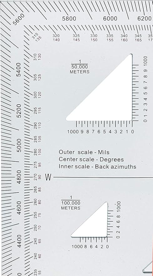 • The inner protractor is marked in degrees and the outer protractor is in mils.