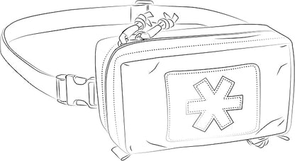 • Pouch: Made of Cordura 500D. Detachable hip belt with buckle. External velcro panel with reflective Paramedic cross. Fit for both vertical or horizontal carry. Three external ribbons and an elastic drawstring in lower part. Compatible with DUTY BELT/MOLLE/PALS and backpack straps. Zipper closure