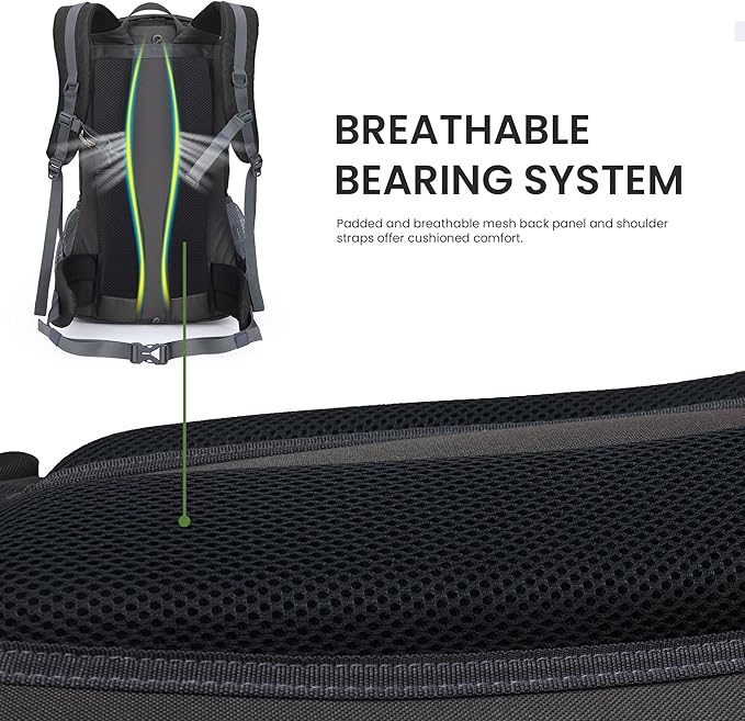 • Comfortable and Breathable: This travel backpack uses breathable mesh padding and a ventilated back system to keep your items dry and ventilate your back. The ergonomically designed structure helps to evenly distribute the weight, making it comfortable to carry while hiking.