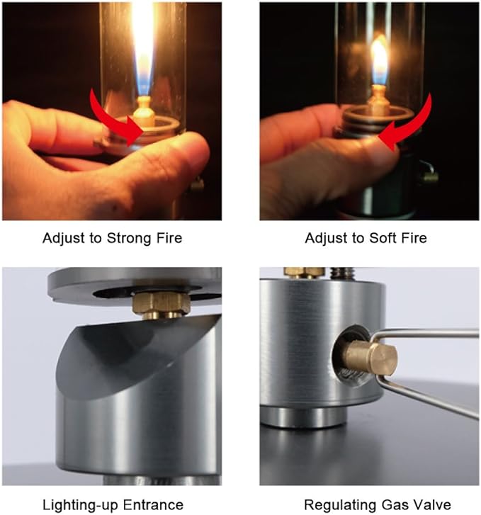• HEAT RESISTANT & WINDPROOF: Corrosion and high-temperature resistance. Toughened glass lamp globe is light and durable and it is equipped with and easy lighting-up tuyere for practical to use.