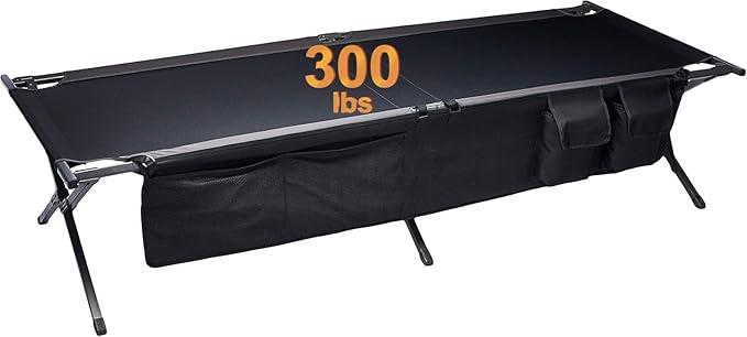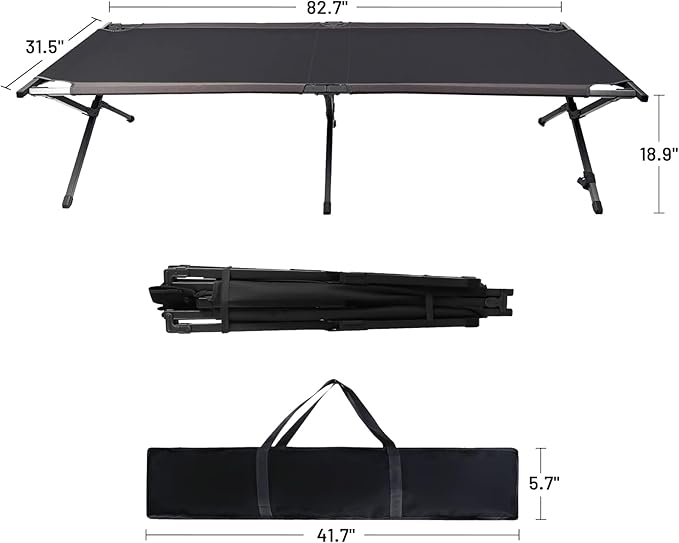 • PERFECT SIZE AND WEIGHT CAPACITY: With a weight capacity of 300 lbs., this camping cot measures 41.73" x 8.86" x 5.71" when collapsed and a generous 82.68” x 31.5” x 18.9” when fully assembled, providing a comfortable sleeping surface for adults of all sizes.