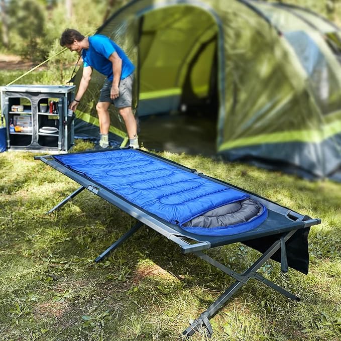 • VERSATILE SLEEPING COTS FOR ADULTS: This folding camping cot is a versatile option for sleeping outdoors or indoors. Whether you're camping, backpacking, or just need an extra bed for guests, this cot provides a comfortable and convenient sleeping solution.