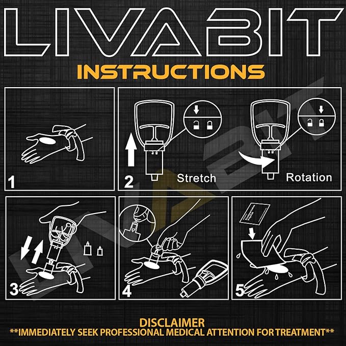 • LIVABIT EXTRACTOR Most effectively retrieves venom from extremities & areas of body outside muscle areas, effectiveness varies with the location of the bite