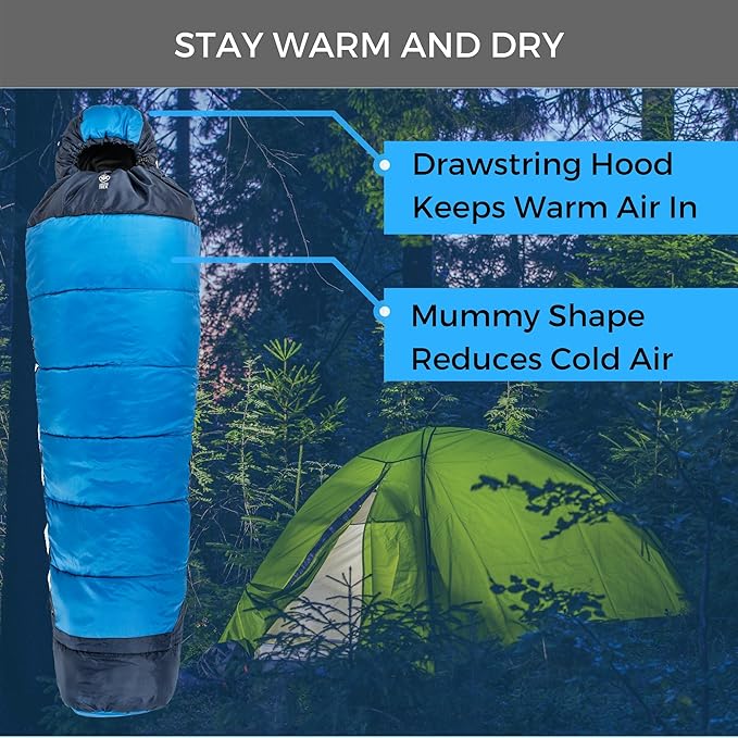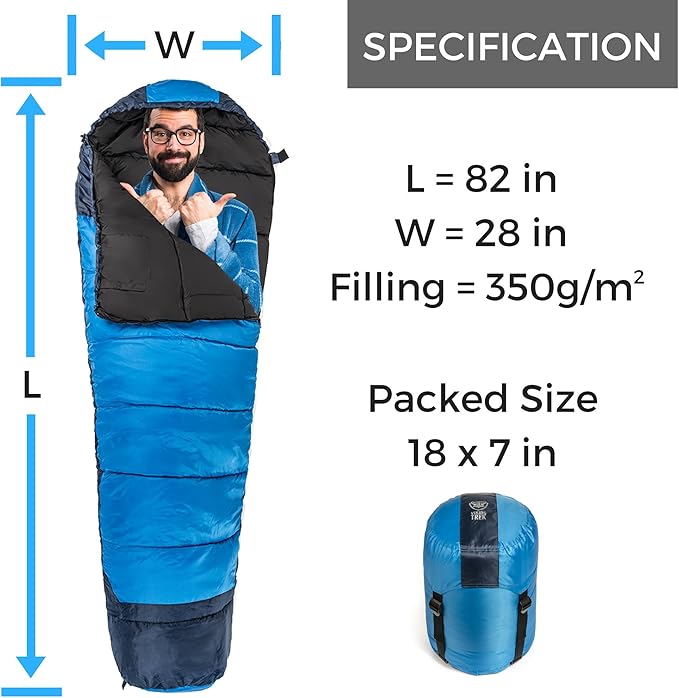 Viking Trek 350x Lightweight Adult Sleeping Bag – Warm & Breathable, Compact Camping Gear for Hiking and Backpacking - Camping Essentials - Includes 100% Waterproof Stuff Sack