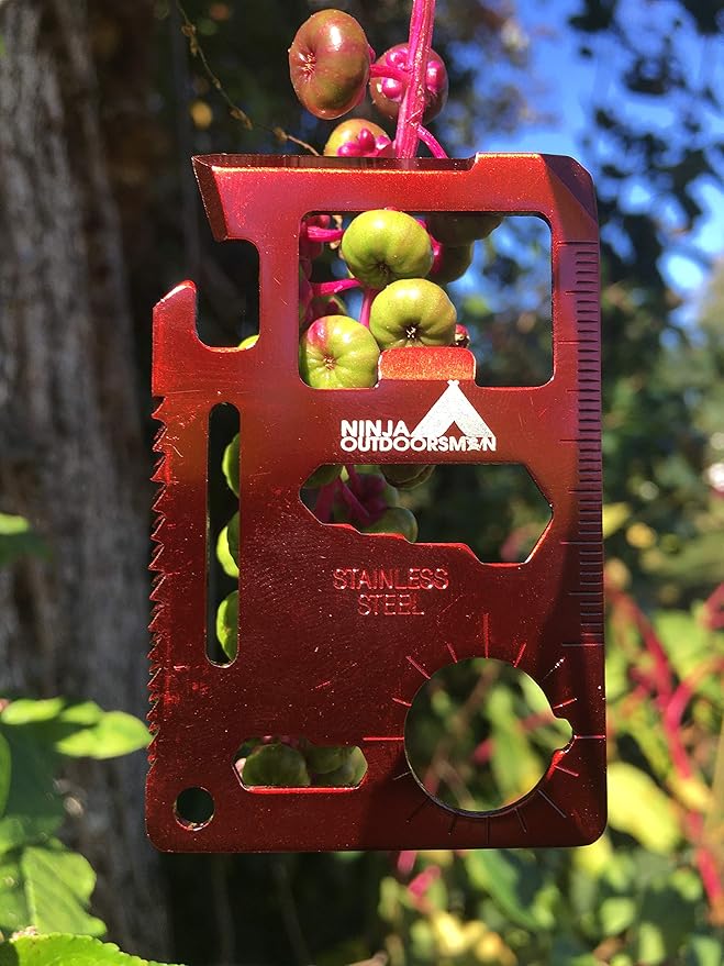 (10 Pack, Red) Ninja Outdoorsman 11 in 1 Stainless Steel Credit Card Pocket Sized Survival Multi Functional Tool - Stocking Stuffers, Christmas Gifts Under 10 Dollars
