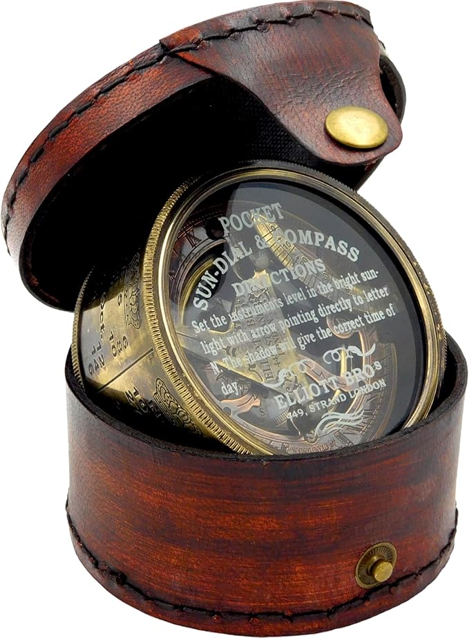 • Functional Sundial: Enjoy the dual functionality of a compass and a sundial, allowing you to navigate with precision while also telling time using the sun's position.