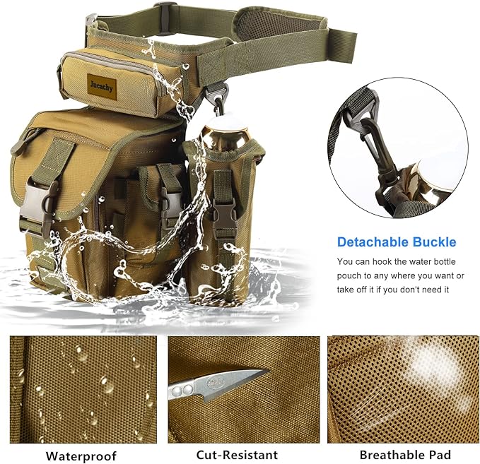 Jueachy Drop Leg Bag for Men Tactical Metal Detecting Thigh Pack with Water Bottle Pouch