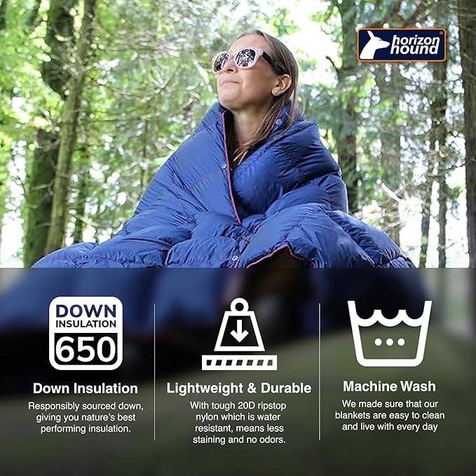 Horizon Hound Down Camping Blanket - Outdoor Travel Quilt | Sustainable, Insulated, Lightweight & Warm Gear for Sleep, Camping, Stadium, Hiking & Festivals | Water Resistant, Packable & Compact