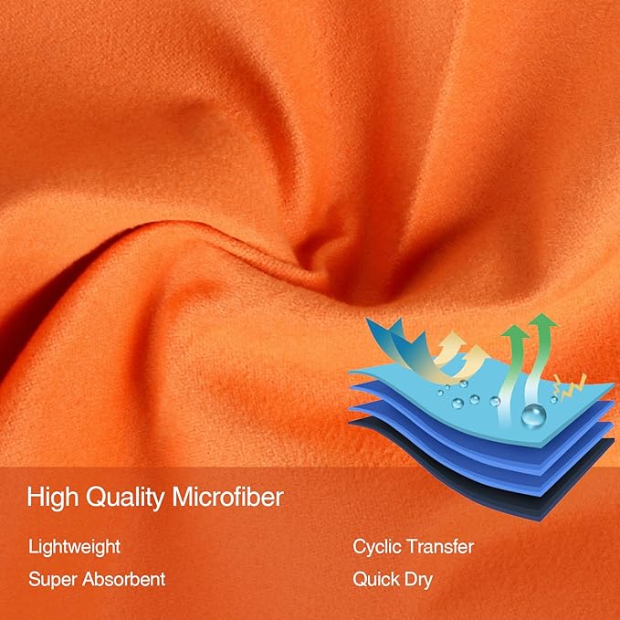 • MULTI-FUCNTIONAL QUICK DRY TOWEL & GIFT IDEA: Lightweight and compact microfiber towel for travel is super versatile for any situation. Such as backpacking, travel, camping, hiking, swimming, yoga, golf, gym, fitness, exercise. Perfect for covers your sun lounger, deck chair or camping undera beach umbrella&sun shelter. The travel towel also looks really fashionable and sporty, which makes it a great gift idea for your family and friends. Of course, if you have any problem, please contact us.