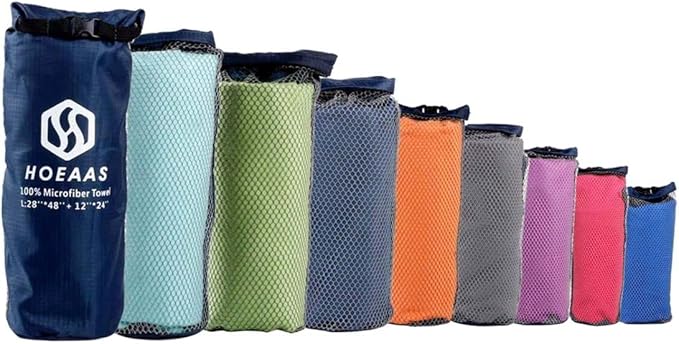 • GREAT OPTIONS & EASY HANG LOOP: Each microfiber towels with a hanging snap loop so it is convenient hanging for quick dry anywhere without blew away. S (2pcs 32 x 16 inch),used as face towel or workout towel to dry off sweat or water. M (40 x 20inch+24 x 12inch) is perfect for sport towel to around your neck. L (48 x 28inch+24 x 12inch), used as bath towel or gym towels. XL(60 x 30inch+24 x 12inch) and XXL towel (72 x 32inch+24 x 12inch) is an ideal choice for a yoga mat or a beach blanket.