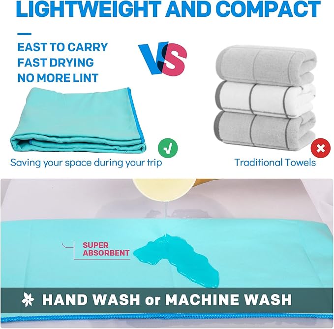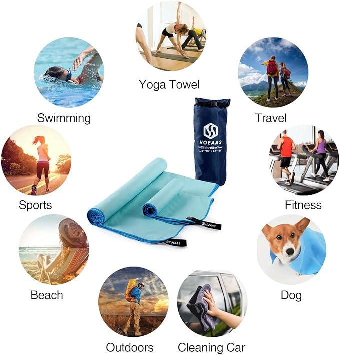• MULTI-FUCNTIONAL QUICK DRY TOWEL & GIFT IDEA: Lightweight and compact microfiber towel for travel is super versatile for any situation. Such as backpacking, travel, camping, hiking, swimming, yoga, golf, gym, fitness, exercise. Perfect for covers your sun lounger, deck chair or camping undera beach umbrella&sun shelter. The travel towel also looks really fashionable and sporty, which makes it a great gift idea for your family and friends. Of course, if you have any problem, please contact us.