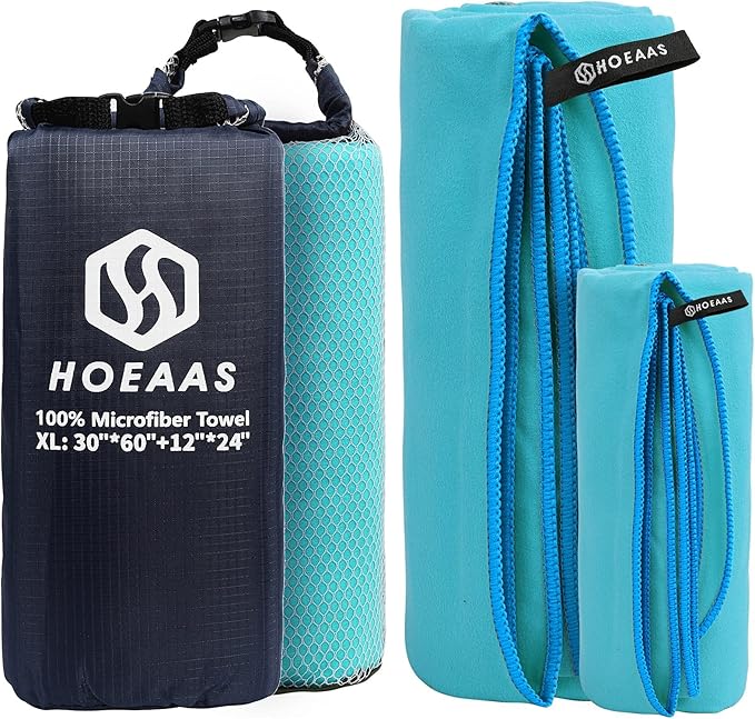 HOEAAS 2 Pack Microfiber Camping Towels, Quick Dry Towel, Super Absorbent Ultra Compact Travel Towel Soft Lightweight Sports Towel for Sweat Fast Drying Towels for Pool,Gym,Hiking,Backpacking,Fitness