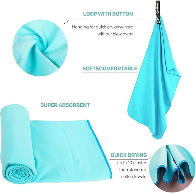 • MULTI-FUCNTIONAL QUICK DRY TOWEL & GIFT IDEA: Lightweight and compact microfiber towel for travel is super versatile for any situation. Such as backpacking, travel, camping, hiking, swimming, yoga, golf, gym, fitness, exercise. Perfect for covers your sun lounger, deck chair or camping undera beach umbrella&sun shelter. The travel towel also looks really fashionable and sporty, which makes it a great gift idea for your family and friends. Of course, if you have any problem, please contact us.