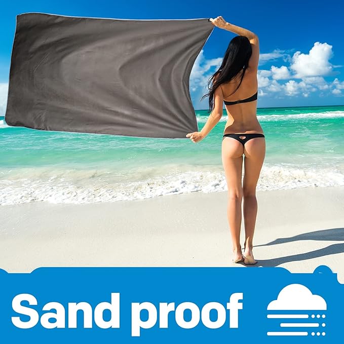 • SOFT COMFORTABLE & SAND PROOF: This travel towel are made from luxurious soft microfiber which is smooth and no any abnormal smell. Gives your skin a dry feeling and can be used as a sun shade to protect your skin. The oversized beach towel aslo sand-proof. When you play on the beach, microfiber towel doesn't stick to the sand. Whether you use as a gym towels, camping towel, hand towel, face towel, sweat towel or even as survival gear and equipment, these quick dry towels will come in handy!