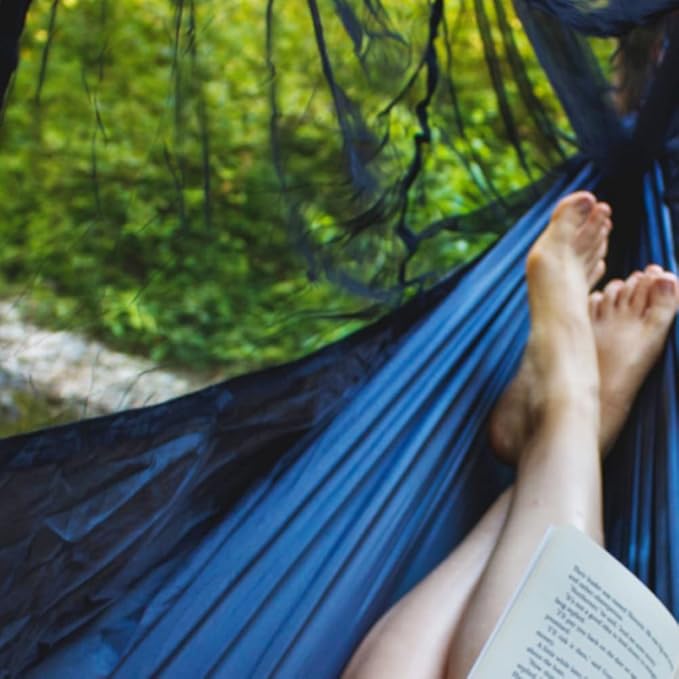 • Exclusive 100% Polyester Mesh No-See-Um netting 360 degree coverage, which is ideal in balancing protection against Bugs & Mosquitos. Moreover, this Hammock net is breathable and provides ventilation.