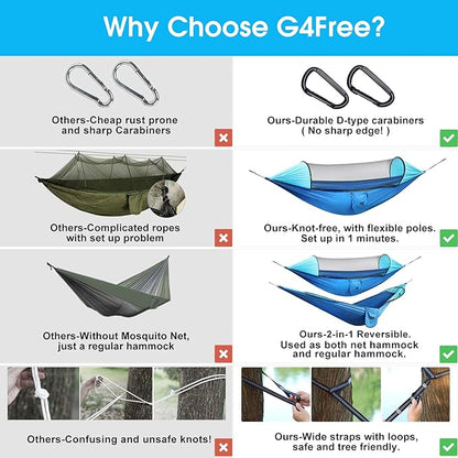 G4Free Large Camping Hammock with Mosquito Net 2 Person Pop-up Parachute Lightweight Hanging Hammocks Tree Straps Swing Bed for Outdoor Backpacking Backyard Hiking