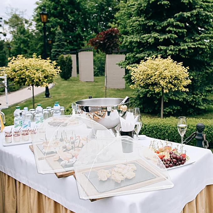 • Not only for party supplies: Elegant white food covers are not just for full year outdoor kitchen, birthday and pool party, garden BBQ, picnic, but also for RV, patio dinners, camping accessories, taco bar, outdoor movie nights and party buffet.