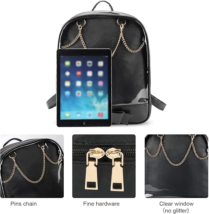 • ❤Pin Display Backpack❤:When you have more and more enamel pins,you need a ita bag to collect and show them.Putting some enamel pins,keychains,badges,brooches in the clear window,just show off but without worrying about losing them.