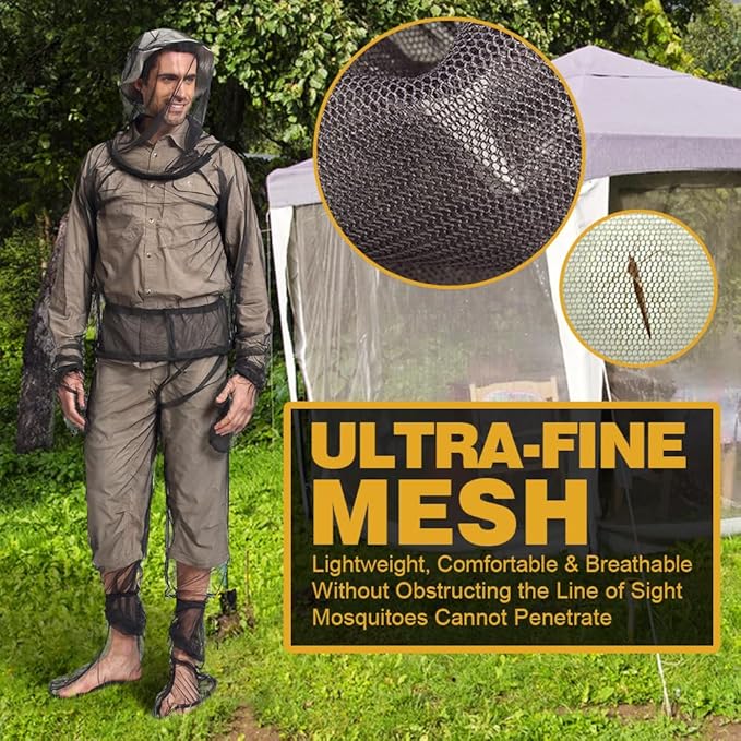 • 【Breathable Translucent Bug Net Suit】Anti Mosquito Netting clothing made of durable lightweight polyester no-see-um mesh for outdoor activities. Mosquito repellent jacket is breathable and non-toxic, giving you a lot of freedom to move freely and naturally. You might even forget that you’re wearing it!