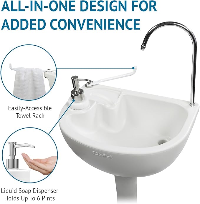 • INTEGRATED SOAP DISPENSER/TOWEL HOLDER- Holds Up to 6 Pints of Liquid Soap or Detergent; All-in-One Design Includes Handy Stainless Steel Towel Rack, Wash Basin & Carry Handle for Travel