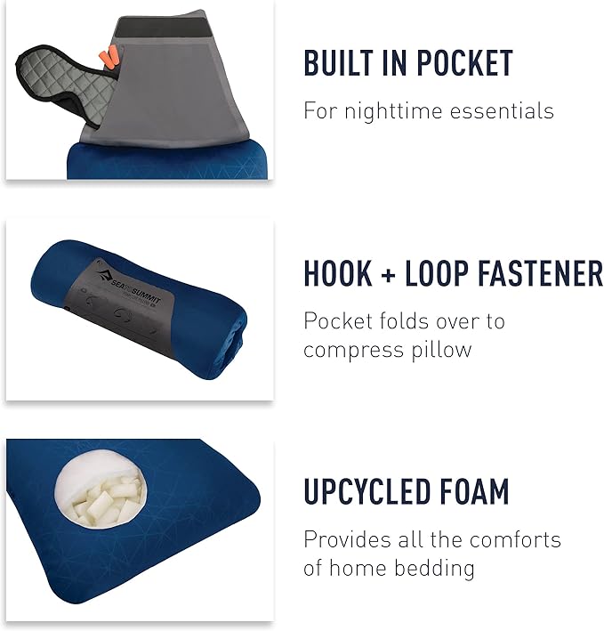 • Built in pocket for nighttime essentials doubles as a hook and loop fastener for compressing the pillow to 17 percent of its original size; expands quickly when unrolled