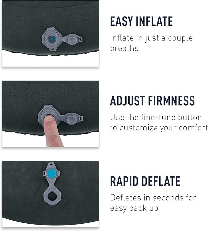 • Multi-function mini valve provides easy inflation, fast deflation, and the ability to fine-tune the firmness of the pillow; TPU air bladder is durable and supportive
