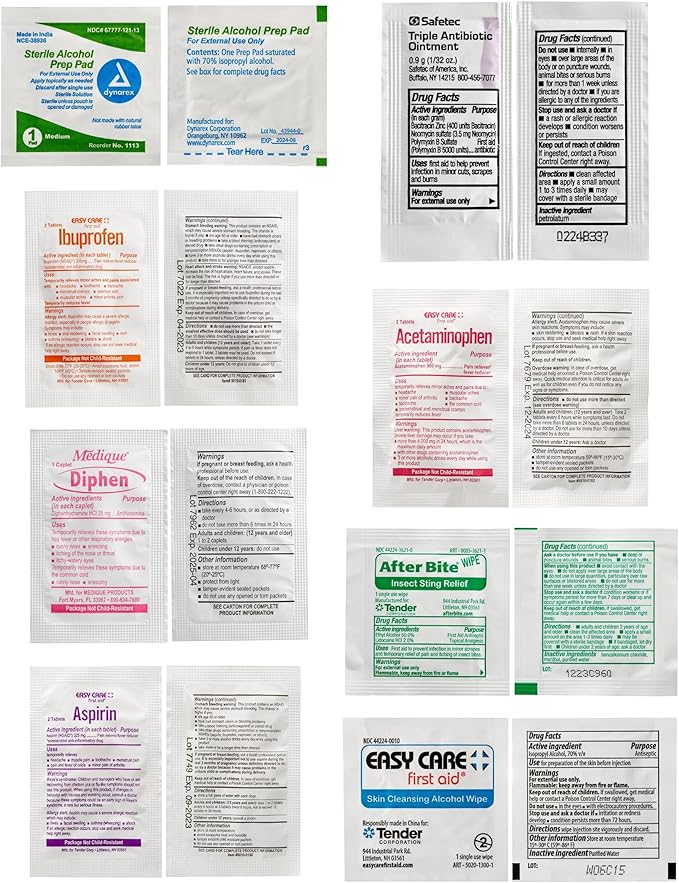 • Hospital-Quality Supplies: The first aid bag includes bandages, instruments, medications, and more, perfect for a camping gear medical kit