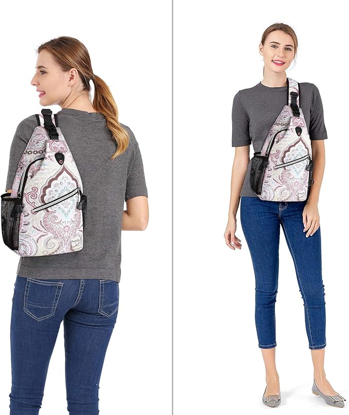 MOSISO 13 inch Sling Backpack, Multipurpose Hiking Daypack Outdoor Rope Crossbody Chest One Shoulder Bag, National Style