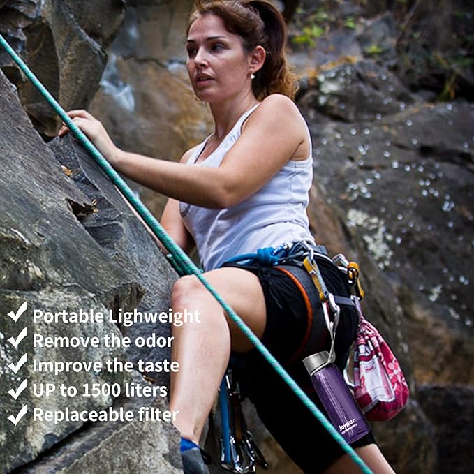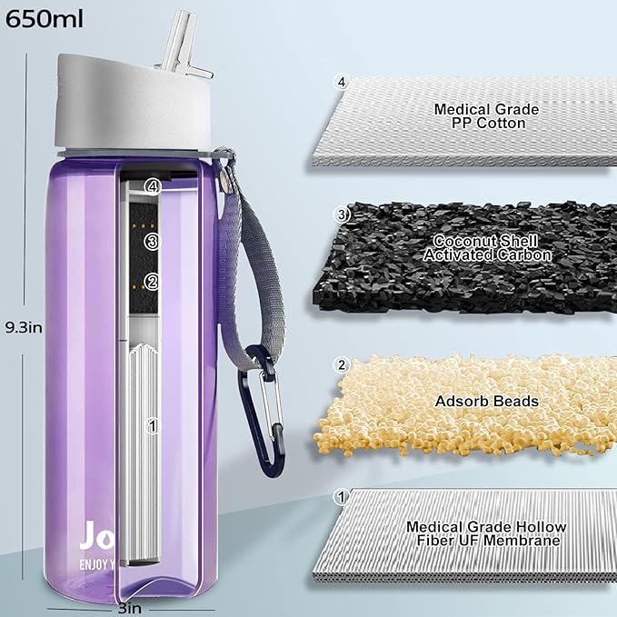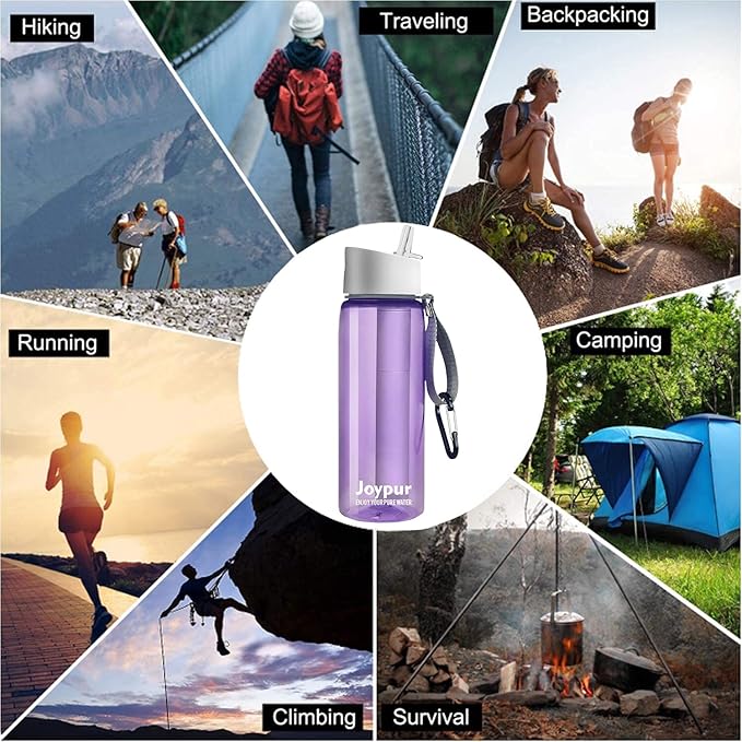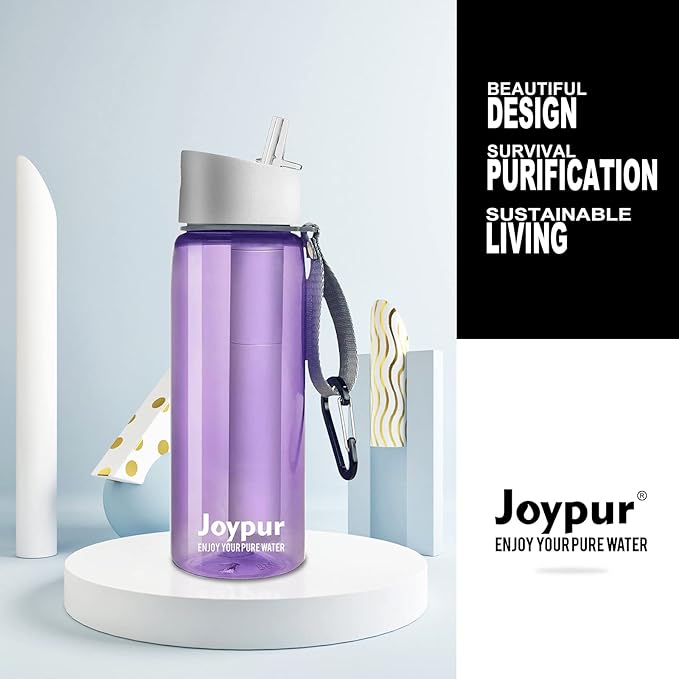 • [FILTER PERFORMANCE] Joypur portable water filter bottle, using 4-stage composite filtration technology, 0.01 micron medical-grade hollow fiber ultrafiltration membrane can filter out 99.999% of the organic organisms and harmful substances, filtering straw also contains coconut shell activated carbon, medical-grade PP cotton and coarse filter, can reduce residual chlorine, odor, intercept heavy metals, sediment and other impurities, etc