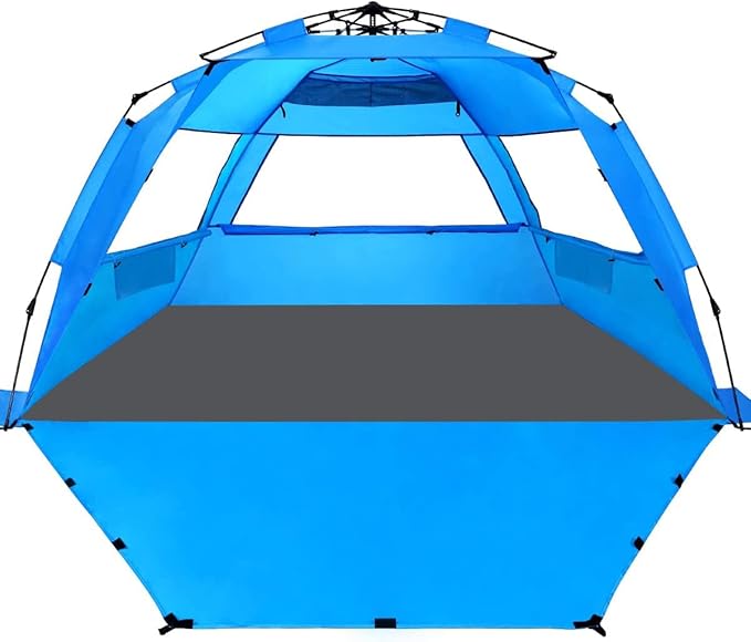 WhiteFang Deluxe Pop Up Beach Tent Sun Shade Shelter for 3-4/5-6 Person, UV Protection, Extendable Floor with 3 Ventilating Windows Plus Carrying Bag, Stakes, and Guy Lines