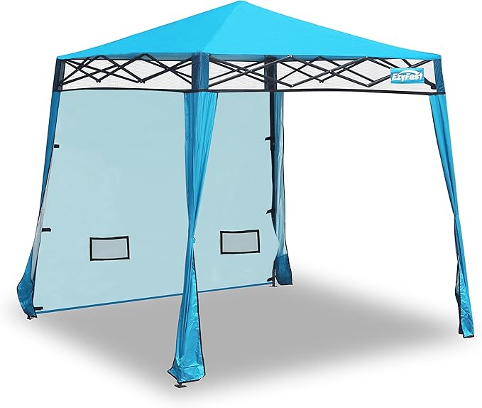 EzyFast Compact Pop Up Canopy Tent, Collapsible Instant Shelter, Portable Sports Cabana, With Built-in Weight Bags, 8 x 8 ft Base / 6 x 6 ft Top for Camping,Hiking,Fishing,Family Outings (Mosaic Blue)