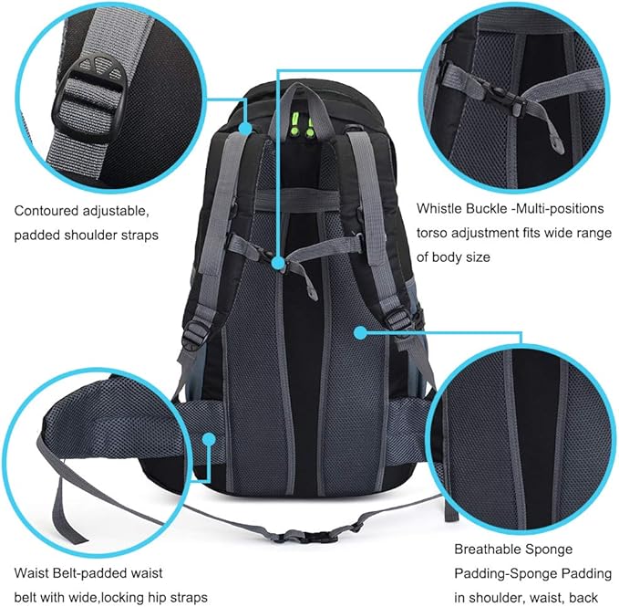 • 👍 ULTIMATE COMFORT - Experience unmatched comfort with our hiking backpack's ergonomic design, featuring breathable materials and cushioned straps for ultimate support during long hikes and backpacking trips