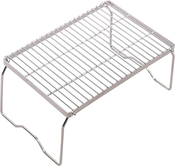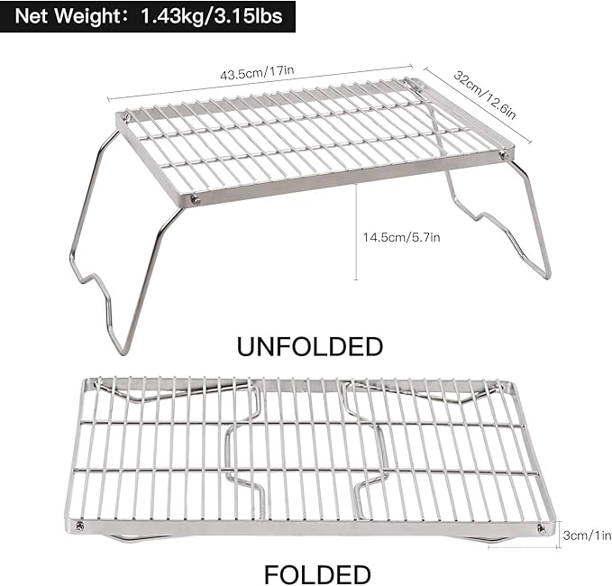 • HIGH QUALITY MATERIAL: The over-the-fire camping grill is made of 304 stainless steel grate and the legs are made of 201 stainless steel. This helps the grill resist oxidation and corrosion. Stainless steel also makes it lighter and more durable than iron.