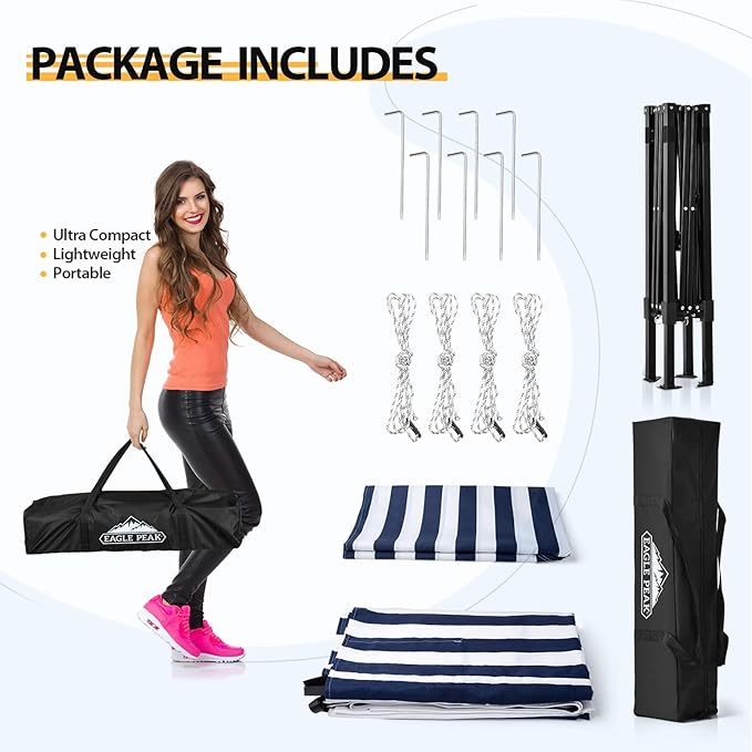 • EASY TO SETUP AND PUT AWAY: The EAGLE PEAK pop up system is more flexible and makes setup easy. The frame glides when opening and closing, enabling one person to easily open and close the canopy .