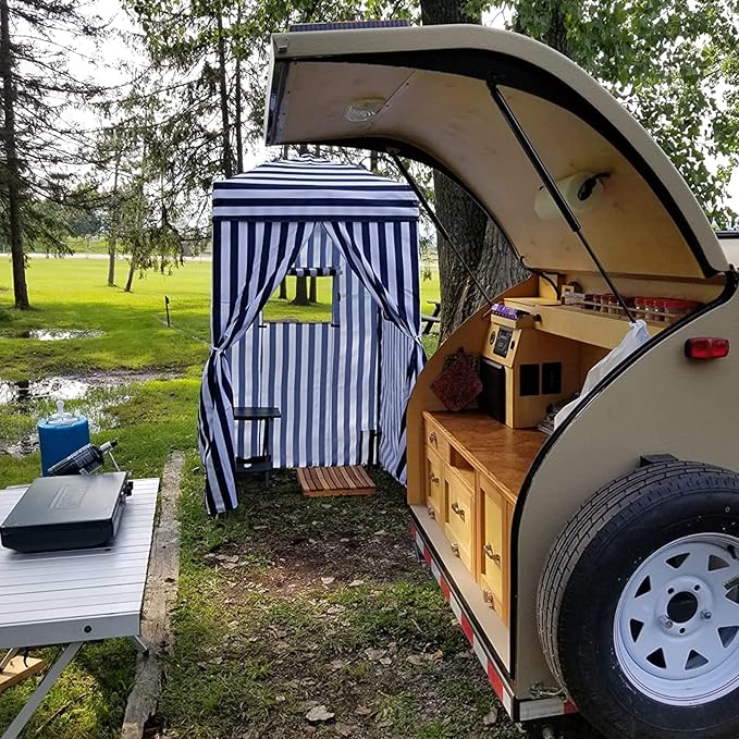 • INSTANT PRIVACY CHANGING ROOM: 4x4 changing tent for one or two people. Perfect as a changing room or sun cabana for outdoor activities: fashion show, photoshoot, camping, backyards, pool party or a showering tent, portable toilet shelter .