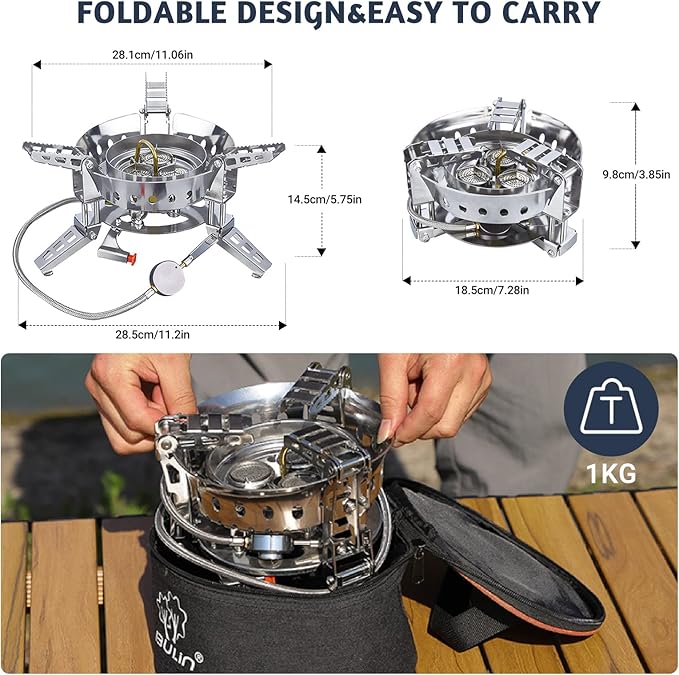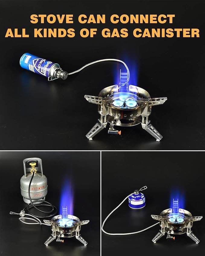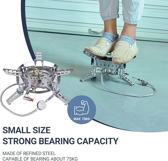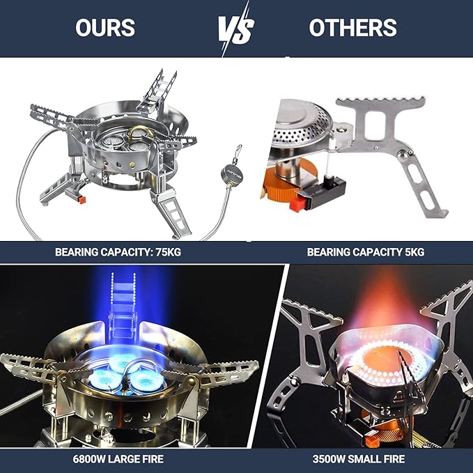 • High Cooking Performance-Save Your Fuel: The firepower of the camping stove is 6800W super strong firepower, which allows you to boil 1 L of water in just 2 minutes, cook your meal very quickly. Windproof design helps the efficiency of your stove ,greatly save fuel.