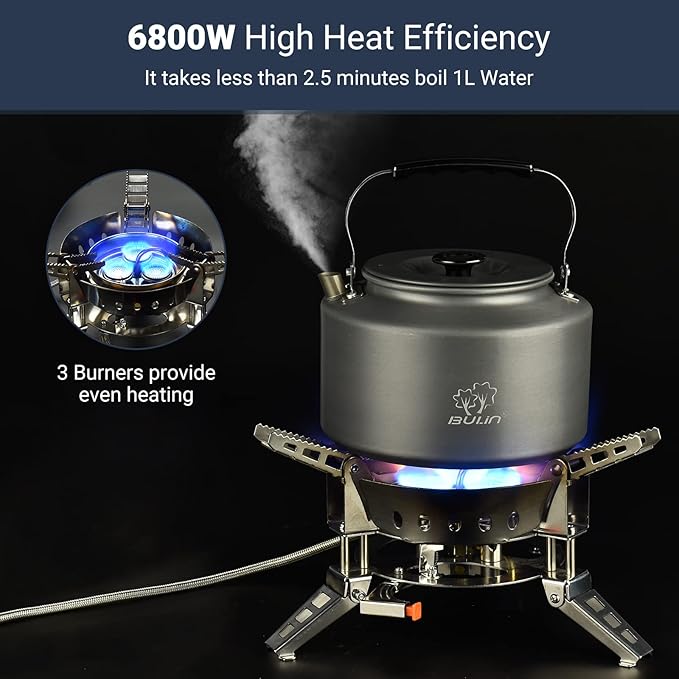 Bulin Camping Gas Stove Burner 6800W Adjustable 3 Burners Ultralight Windproof Backpacking Stove Portable Propane Stove Camp Stoves for Camping Hiking Backpack Outdoor