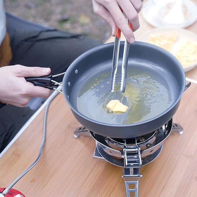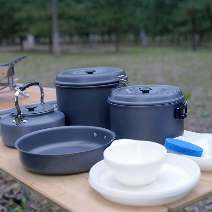 This camp cookware set is seriously all you need. Lightweight but durable, heats evenly, and easy to clean (even without running water!). Cooking outdoors actually felt fun and stress-free. I might start volunteering to cook every trip.