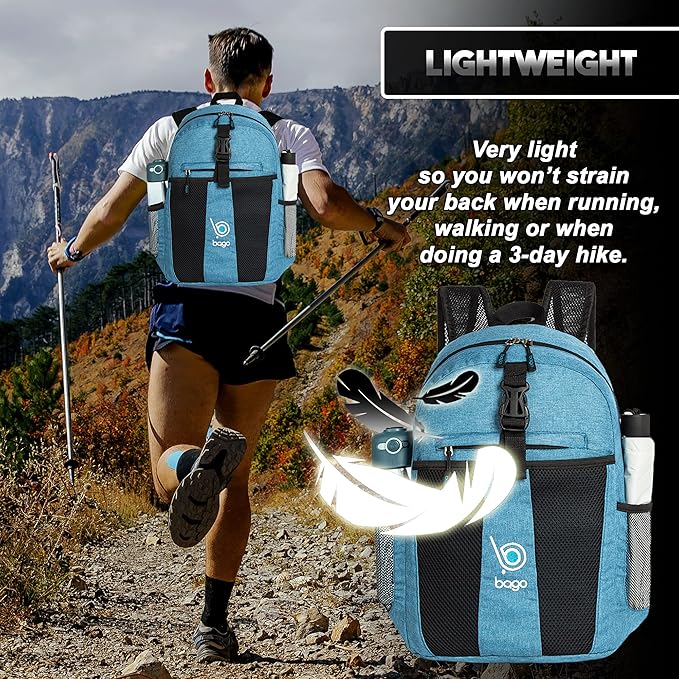 • All-Around Waterproof Daypack Backpack: Got a new adventure ahead of you? Use Bago hiking backpacks for your adventure. A compact backpack for hiking and hunting. An ultra lightweight backpack for amusement, parks and camping trip without the bulk.