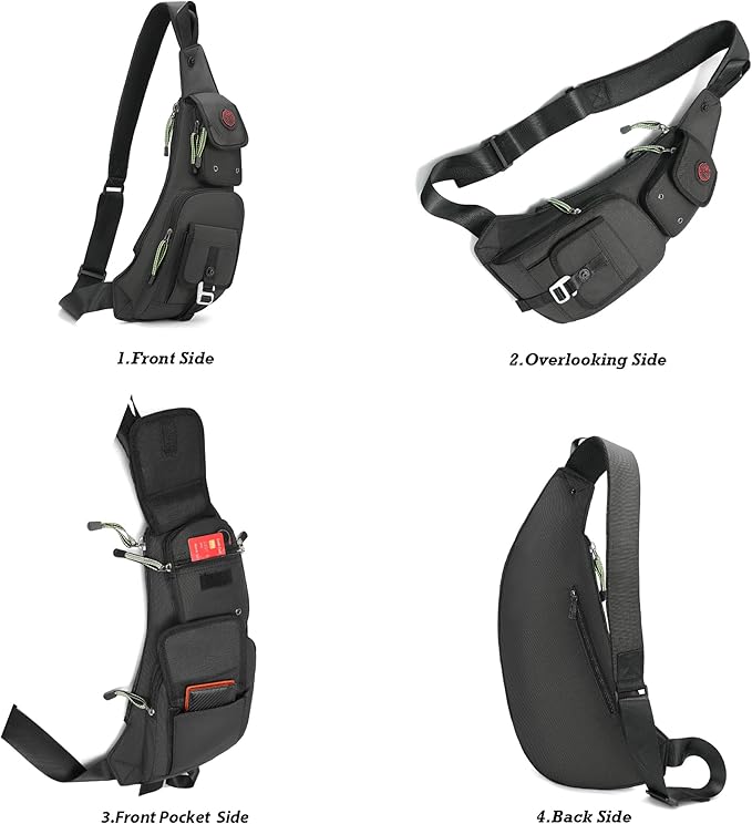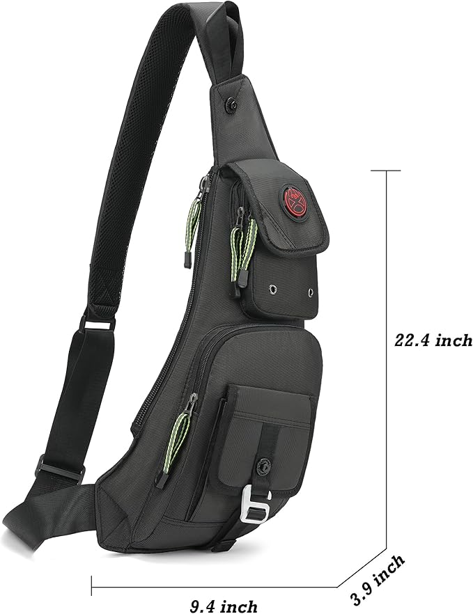 • Material: Durable and lightweight outdoor sling bag. It's the great size and appears to have a very solid construction. The size of it is bigger than a fanny pack, but not as big as a backpack.