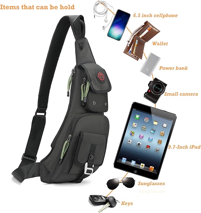• Practical: If you want something smaller to carry rather than having to lug around a huge backpack, this sling bag is a good alternative. It can carry wallet, cell phone, keys, charger, journal or water bottle.