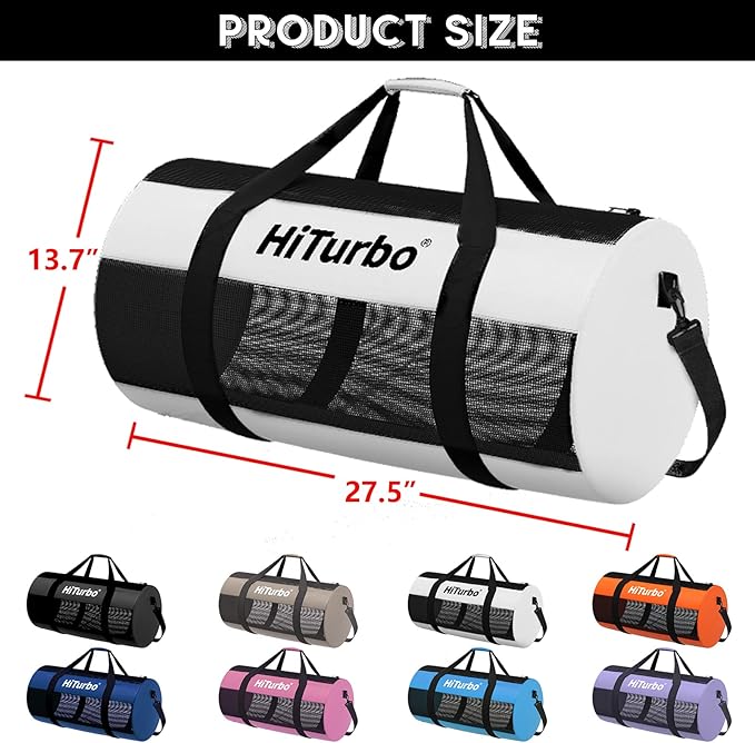 Hiturbo Mesh Dive Duffel Bag: Scuba Gear Bags for Diving, Snorkeling, Freediving and Swimming - 60L Travel Beach Pool Water Sports Equipment Bag with Shoulder Strap