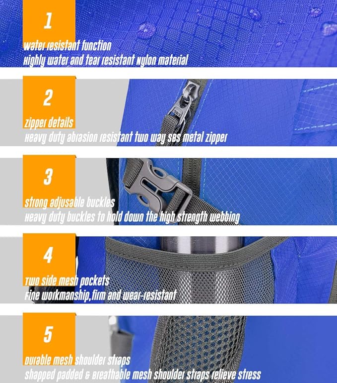 • 🚵★Ultra Lightweight ! 0.7LB!★ : Super lightweight and easy to fold up into a small pocket (A true space saver) to fit anywhere. So you can easily fold the backpack into its own pocket for storage, and unfold it when you reach your destination. To avoid overweight charge, simply unfold from your checked bags and use it as a carry on for your excess baggage. A must have for every trip!